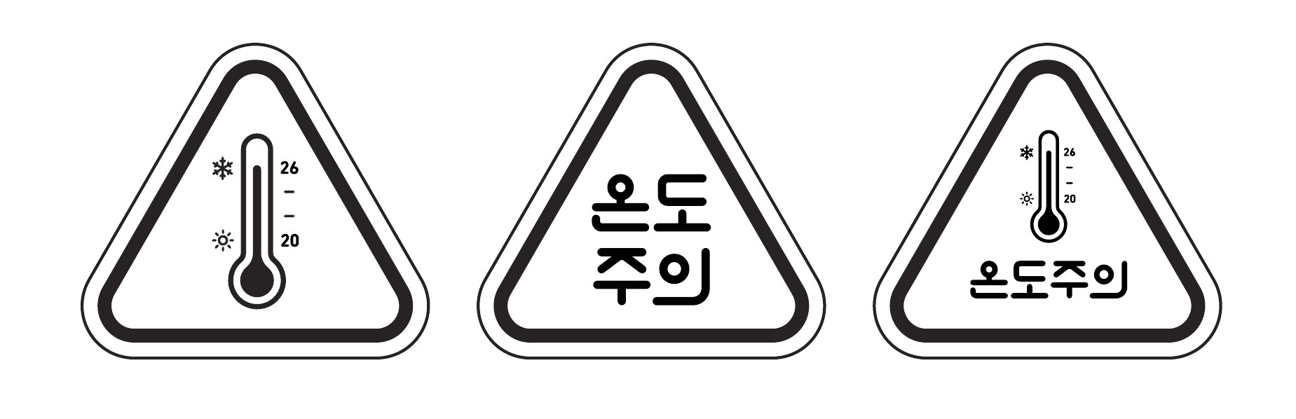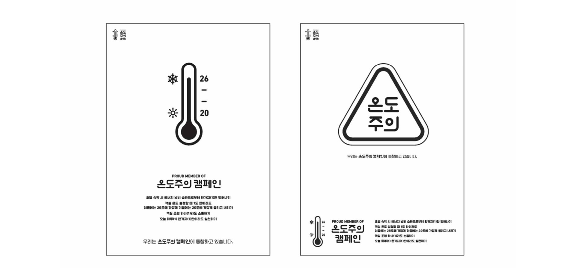 - 온도주의 마크 : 삼각형의 금지 마크 안에 '온도주의'라는 중의적 개념(이제부터 나는 '온도주의자'가 된다, 온도를 주의하자)을 표현했다.