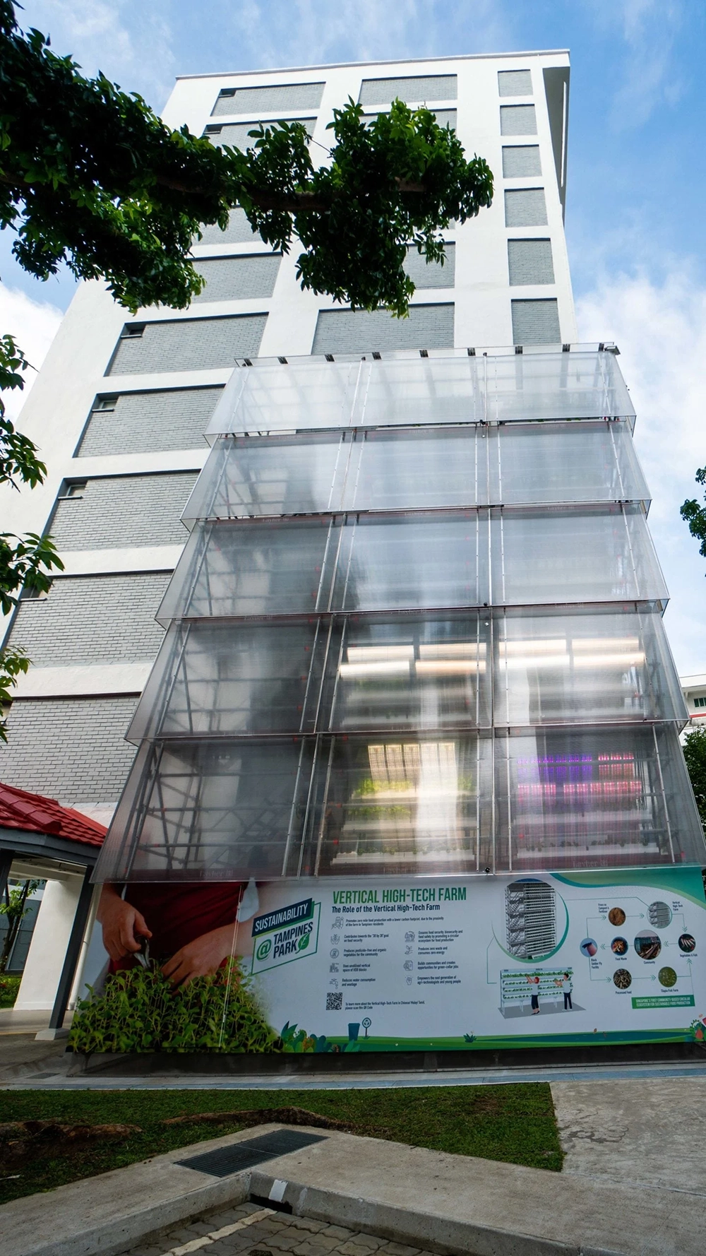 농업이 들어설 땅이 없는 싱가포르에서는 식량 안보가 국가적 화두이다. 코로나 때, 음식 사재기로 슈퍼마켓의 농산물 코너가 텅 비어 있을 때의 불안함을 아직 기억한다. 국경이 닫히고, 전 세계의 농작물을 입맛대로 수입하는 것이 한참 어려워졌다. 영토의 단 1%만 농경에 활용하던 싱가포르에 각성이 일어나고, 공공시설, 학교 건물, 주차장 등 옥상마다 식용 정원Edible Garden을 적극 조성했다. 하지만, 여전히 농산물 소비량의 10%만 자급할 수 있을 정도로, 변화가 미미하다. 한정된 영토에서 어떻게든 경작지를 확보해보려는 싱가포르는 ‘30 by 30 식량 지속가능성 목표(2030년까지 국내 농산물 필요량의 30%를 생산한다.)’를 세우고, 싱가포르의 주공아파트 격인 HDB에 농작물 소량 생산에 적합한 환경을 조성할 방안을 실험 중이다. 이른 바, 벼 삼모작이 가능한 아파트 수직 농장(Vertical Food Stage)이다.