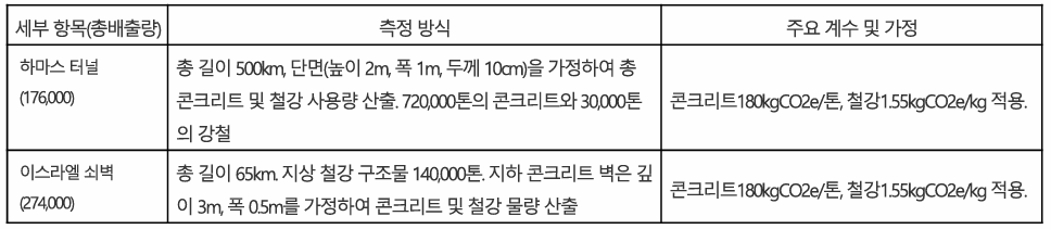 전쟁의 탄소 비용은 단기적인 전투 활동에만 국한되지 않습니다. 분쟁 지역에 수년에 걸쳐 구축된 군사 인프라에는 막대한 양의 탄소가 내재되어 있습니다. 이는 인프라 건설에 사용되는 시멘트와 철강을 생산하는 과정에서 막대한 온실가스가 배출되었음을 의미합니다. 시멘트는 석회석을 가열하는 화학 반응 자체에서 CO2를 방출하며, 철강은 철광석을 녹이기 위해 막대한 양의 화석연료를 연소시키기 때문입니다. 가자 지구 분쟁과 관련된 두 가지 핵심 인프라의 내재 탄소는 다음과 같습니다.