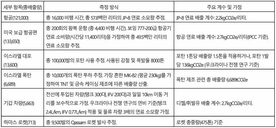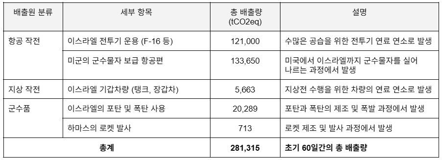 이러한 분석 틀을 바탕으로, 가자 지구 분쟁의 탄소 배출량을 구체적인 수치로 살펴보겠습니다.