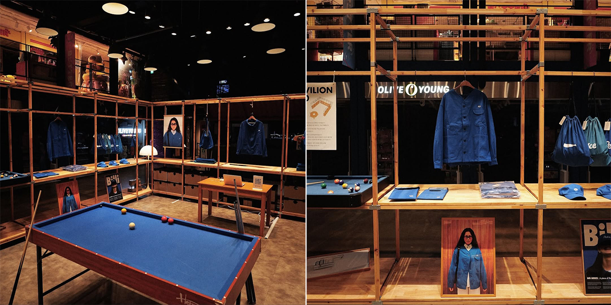 10월 성수동 커먼그라운드에서 진행한 팝업 스토어 역시 브랜드 철학을 공간으로 구현한 사례다. 당구대 원단의 업사이클링 과정을 체험할 수 있는 전시형 팝업으로, 총 400개의 부품으로 구성된 완전 조립식 구조물을 사용했다. 행사 종료 후 전면 해체되어 다음 전시에 재활용되는 구조로, 공간 자체 또한 폐기물 없이 완성되도록 설계했다.