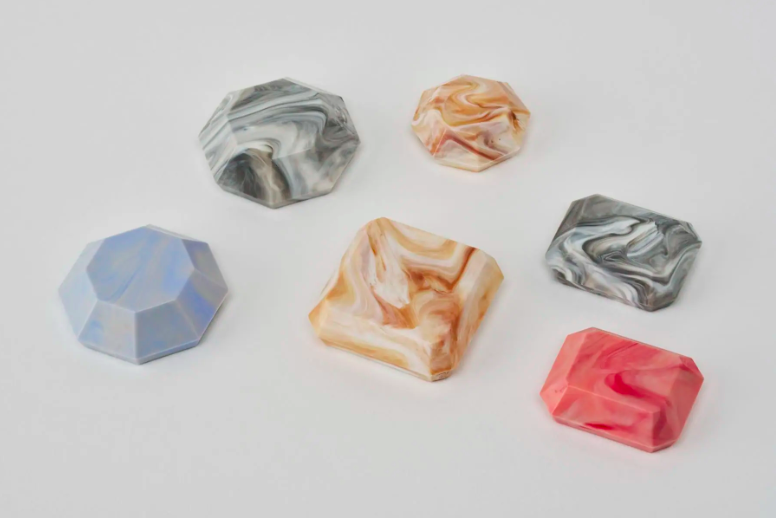 Parallel Plastics의 특징은 기능보다 시각적 완성도에서 더욱 분명하게 드러난다. 기존 재료 디자인이 균일성과 안정성을 추구해왔다면, 이 프로젝트는 서로 다른 성질이 섞이며 나타나는 흔적을 그대로 드러낸다. 이를 결함이 아닌 개성으로 받아들인 것이다. 특히 두 가지 이상의 색이 뒤섞이며 형성되는 마블 성형 방식은 이 프로젝트의 핵심이다. 완성된 결과는 천연석을 떠올리게 하는 깊이 있는 색과 질감을 지닌다. 같은 조건으로 제작하더라도 동일한 무늬는 다시 나타나지 않는다. 모든 결과물이 각기 다른 표정을 지닌다.